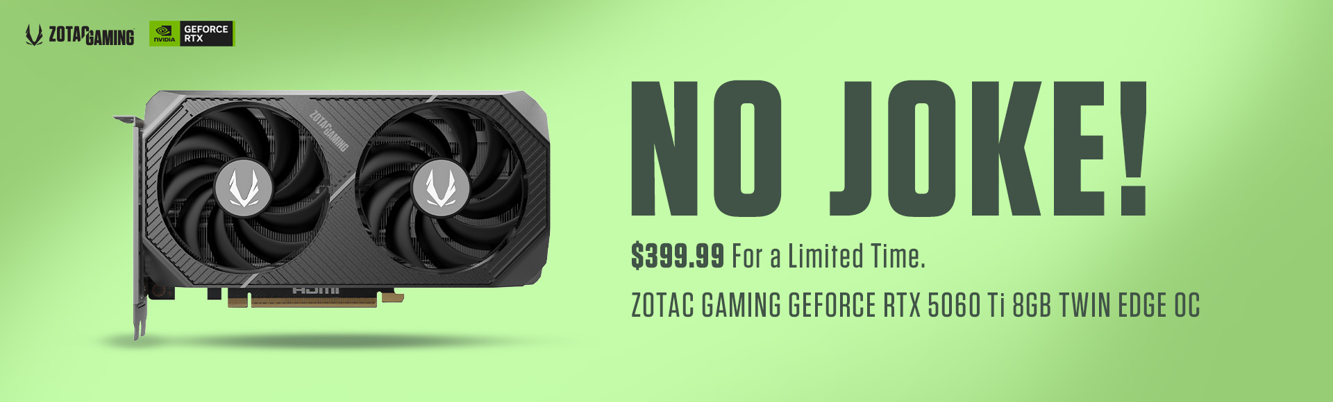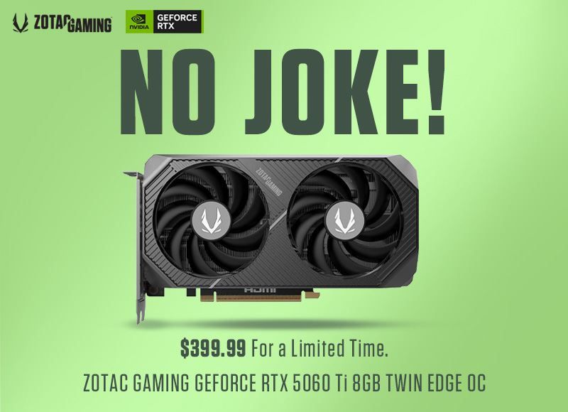 ZOTAC GeForce RTX 5060 Ti 8GB Twin Edge OC$30 off will be automatically applied at checkout. (4/1/26~4/30/26)$429.99 -