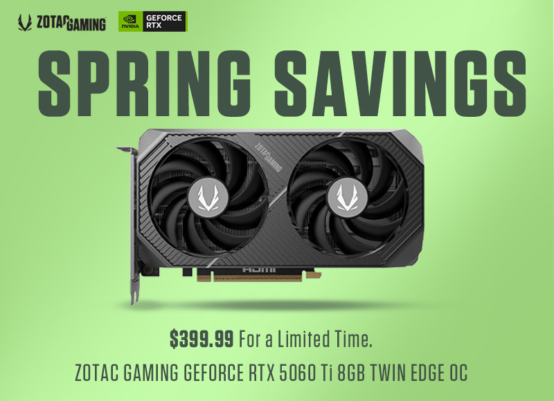 ZOTAC GeForce RTX 4060 Ti 8GB Twin Edge [Open Box]Special Price $351.99 Regular Price $439.99 -