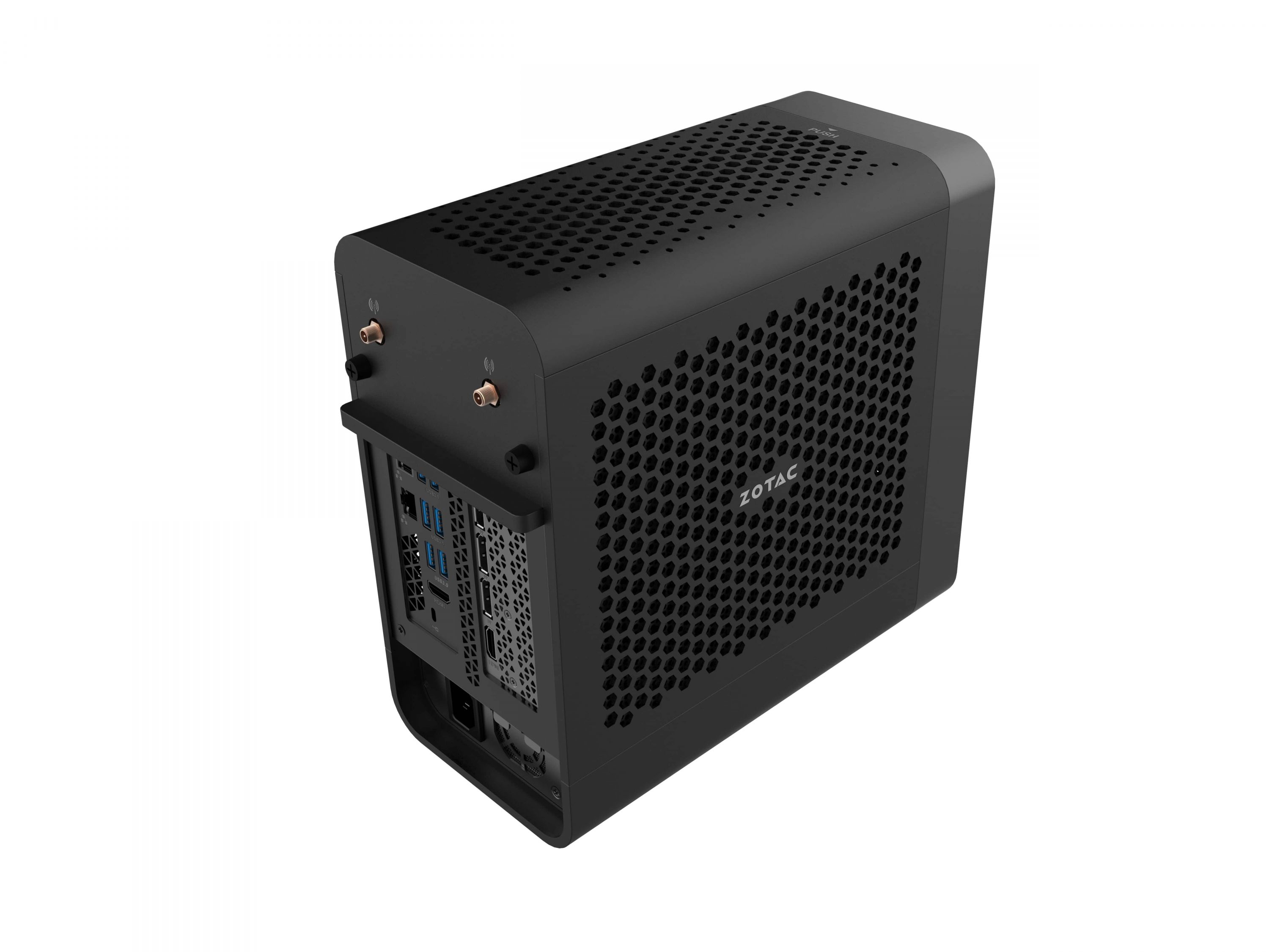 Empower everything in one incredibly powerful, versatile Mini PC. MAGNUS ONE boasts the ultimate performance in an all-new and compact design. It is the first Mini PC taking advantage of the ZOTAC GAMING GeForce RTX™ 3070 graphics card for high-fidelity ray-traced graphics and cutting-edge AI features with DLSS. Paired with a 10th Gen Intel® Core™ i7 processor, upgradable memory and storage support, full-range connectivity options with Killer networking, MAGNUS ONE has the do-it-all capability to deliver the best experience for daily tasks, gaming, entertainment, content creation and business.